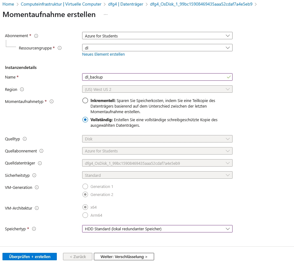 Momentaufnahme eine Datenträgers erstellen und Wiederherstellung einer VM