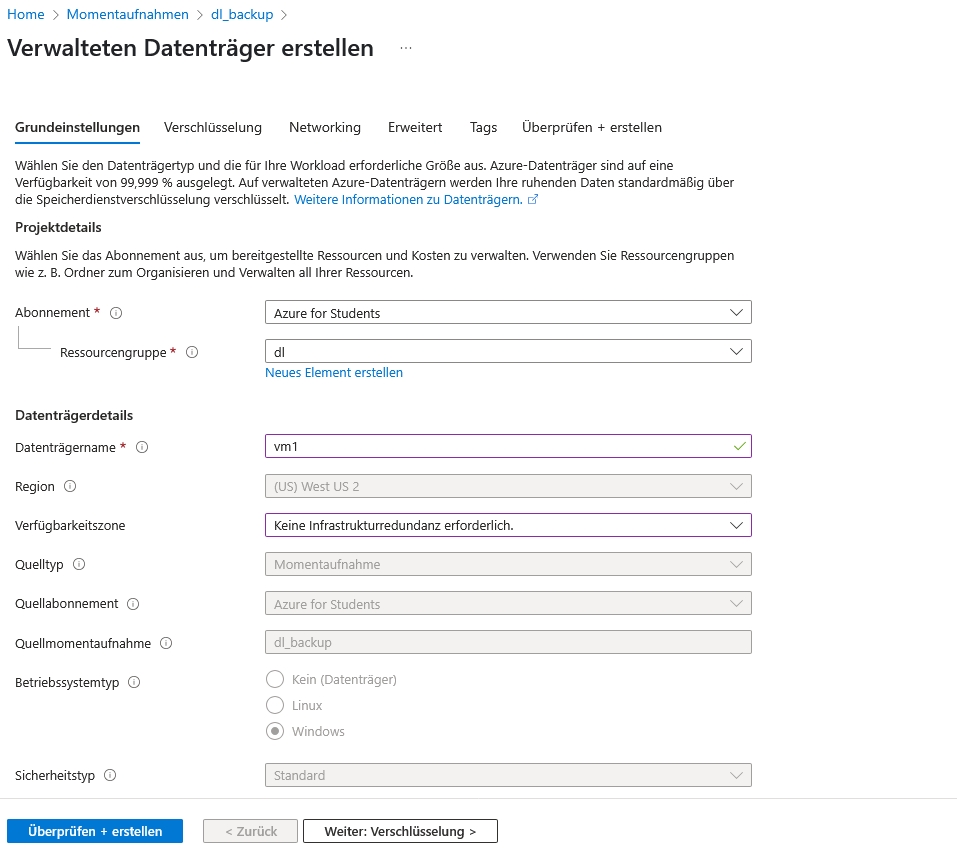Sie möchten einen einzelnen Datenträger sichern, da Sie die VM nicht mehr brauchen. Später soll mit der Sicherung wieder eine VM erstellt werden.