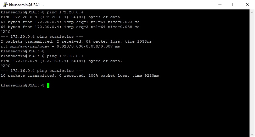 Versuchen Sie nun die Private IP-Adresse der jeweiligen anderen VM zu pingen. Dies schlägt fehl.