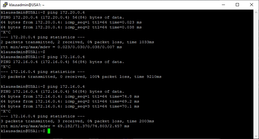 Versuchen Sie erneut die Private IP-Adresse der jeweiligen anderen VM zu pingen. Die Pings kommen nun durch.