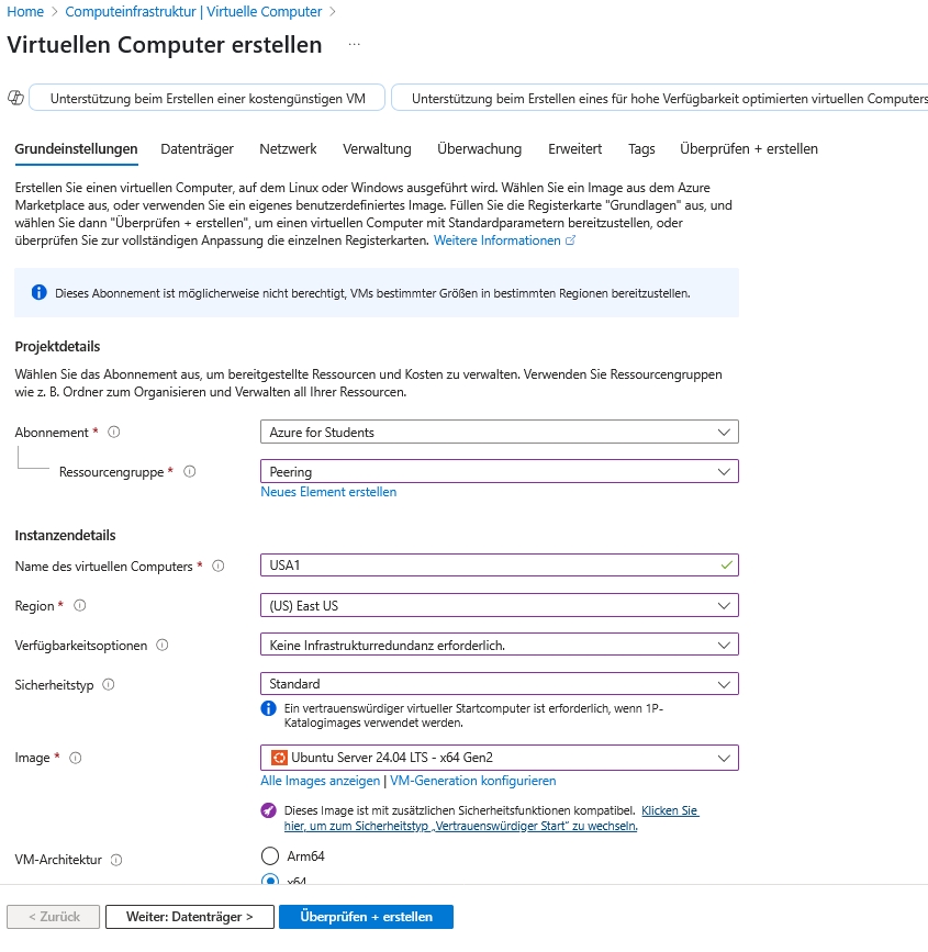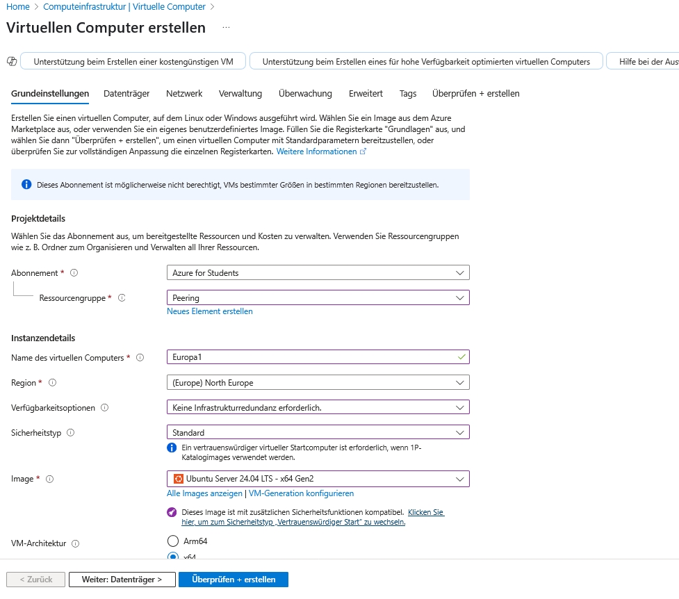 Legen Sie hierzu am besten eine Ressourcengruppe "Peering" an.