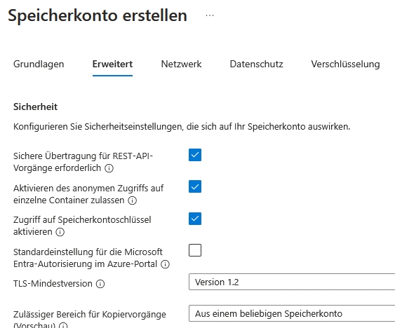 Damit später von Außen auf die Daten zugegriffen werden kann, müssen Sie unter Erweitert den Haken bei anonymen Zugriff setzen.