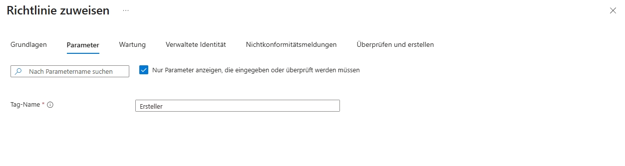 Erstellen Sie eine Richtlinie, die den Tag Ersteller erzwingt.