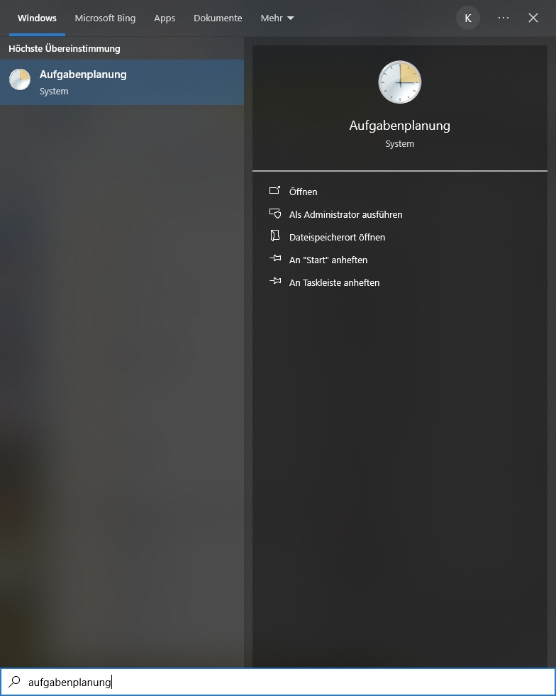- Suchen Sie per Windows-Suche nach "Aufgabenplanung".