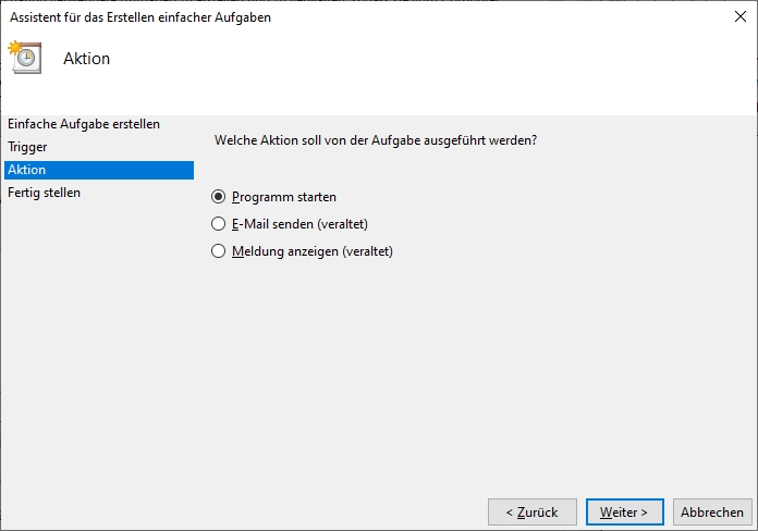 - Wählen Sie "Einfache Aufgabe erstellen..." aus.