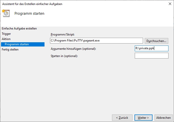 Wenn deine privaten Keydatei ein Passwort hat, müssen Sie es nach dem Windows-Start beim ersten Mal eingeben.