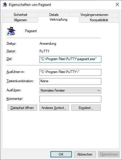 Sie starten den Pageant jedesmal nach dem Anmelden bei Windows per Verknüpfung