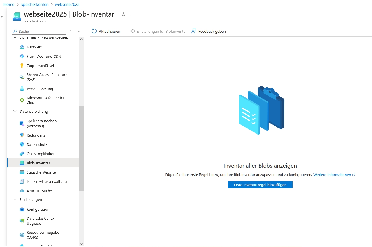 - Gehen Sie unter Datenverwaltung / Blob-Inventar auf den Button "Erste Inventurregel hinzufügen".