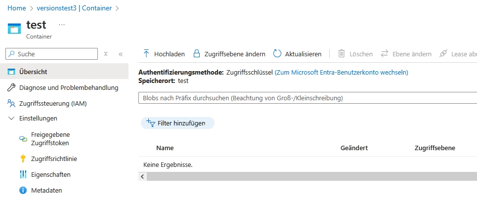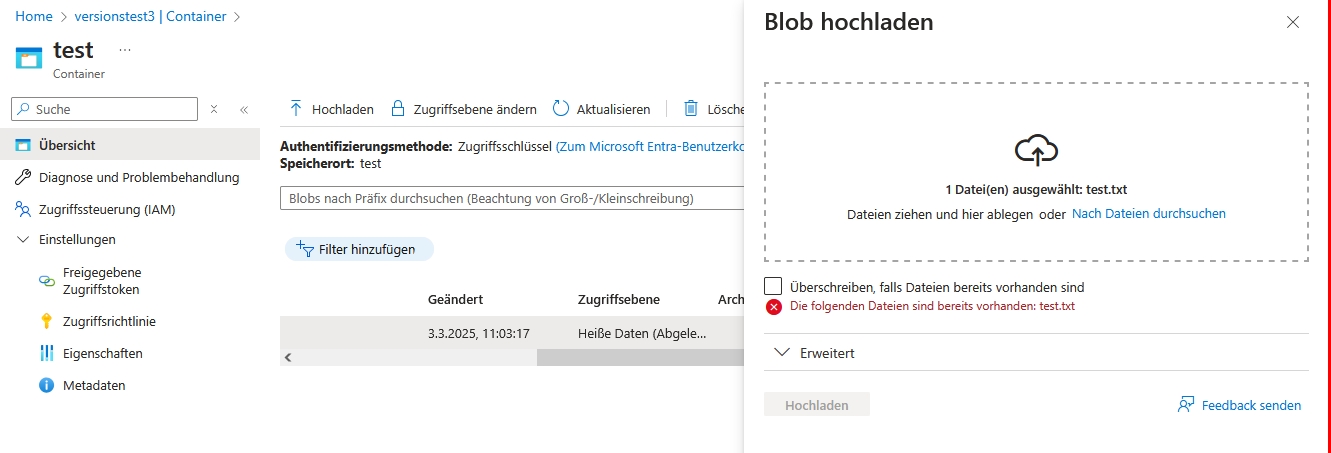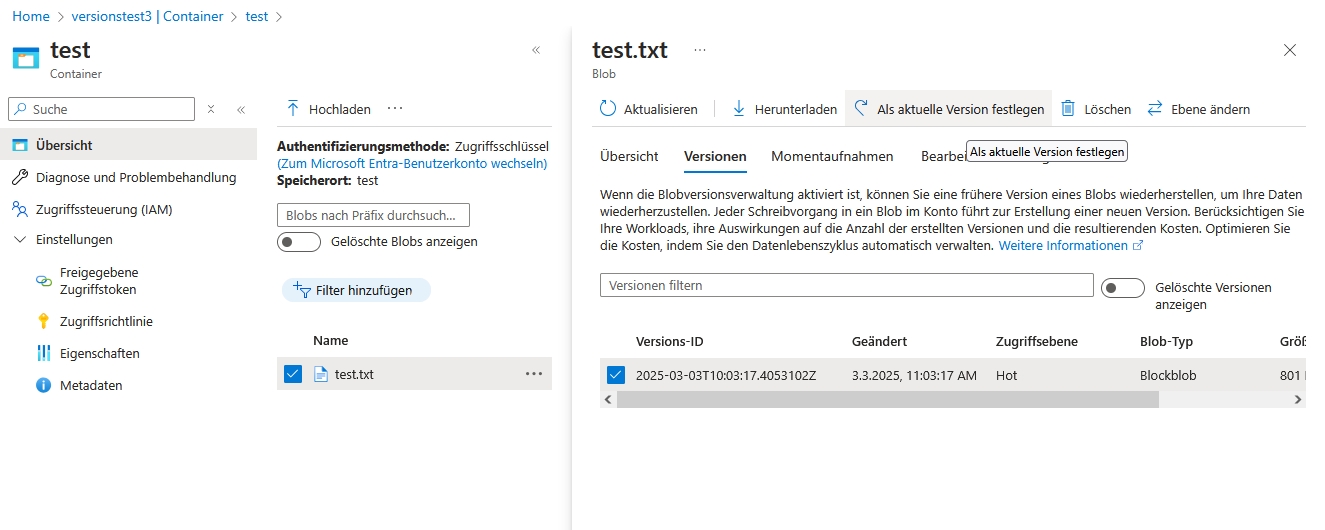 Erstellen Sie ein Speicherkonten welches "Vorläufiges Löschen für Blobs aktivieren" und "Versionsverwaltung für Blobs aktivieren" ausgewählt hat.