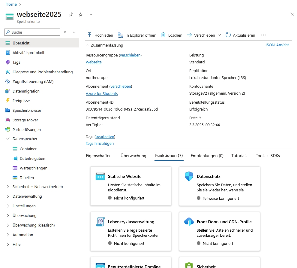 Es soll eine statische HTML-Seite mit Azure online gestellt werden.