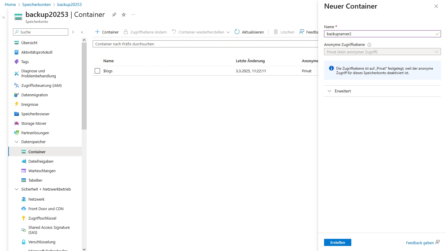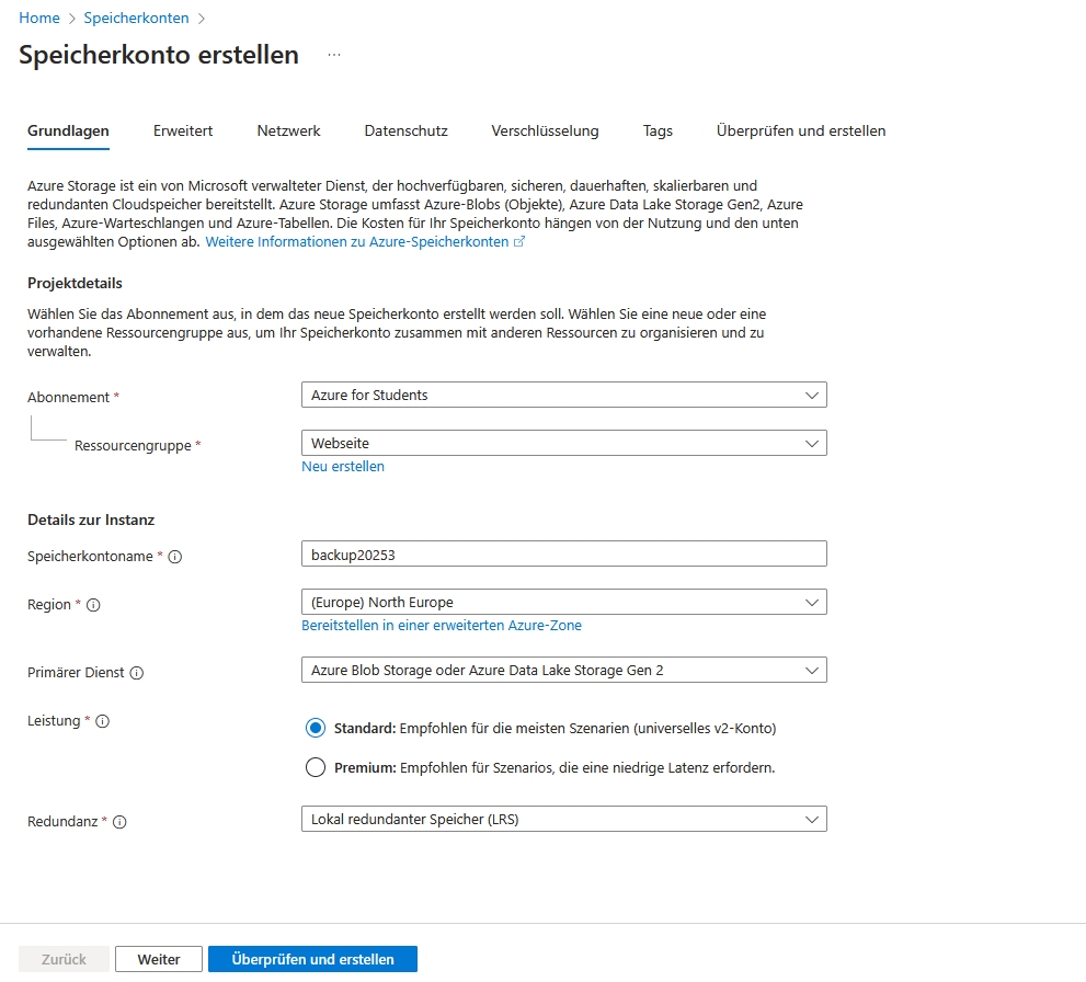 Erstellen Sie ein neues Speicherkonto. Wählen Sie hier unter "Erweitert" die Zugriffsebene Cold aus.