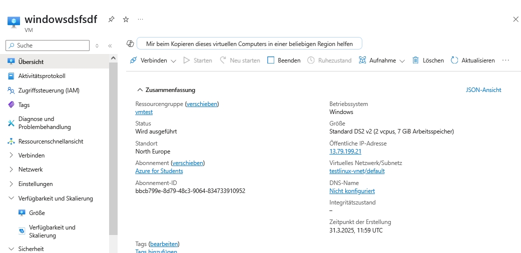 - Stoppen Sie den Server und löschen Sie die Ressourcegruppe, damit keine Kosten entstehen!