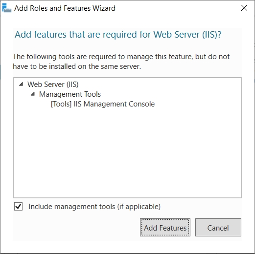 KLicken Sie auf "Add role and features". Danach wird immer nur weiter geklickt. Bis auf die Seite mit "Server Roles" hier muss der "Web Server (IIS)" angewählt werden. Es können hier auch alle Features mit installiert werden. Ganz zum Schluss muss "Install" geklickt werden. "Next" ist dann ausgegraut.