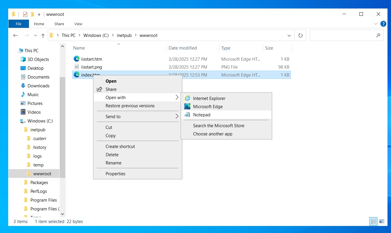 Öffne die index.htm-Datei mit Rechtsklick im Notepad und schreibe eine nette Botschaft hinein.